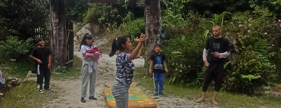 A group of volunteers and friends of the foundation prepared Monday's program at the Bosque Medicinal - El Refugio forest station in the El Paraíso sector. In a block of a few hours, the children could try several activities like Yoga exercises with an Indian teacher, teamwork while solving a labyrinth path, practising various forms of communication, physical activity on an obstacle course, learning about the magic of colours or easy physical experiments using household items and products which everyone can find in every kitchen.